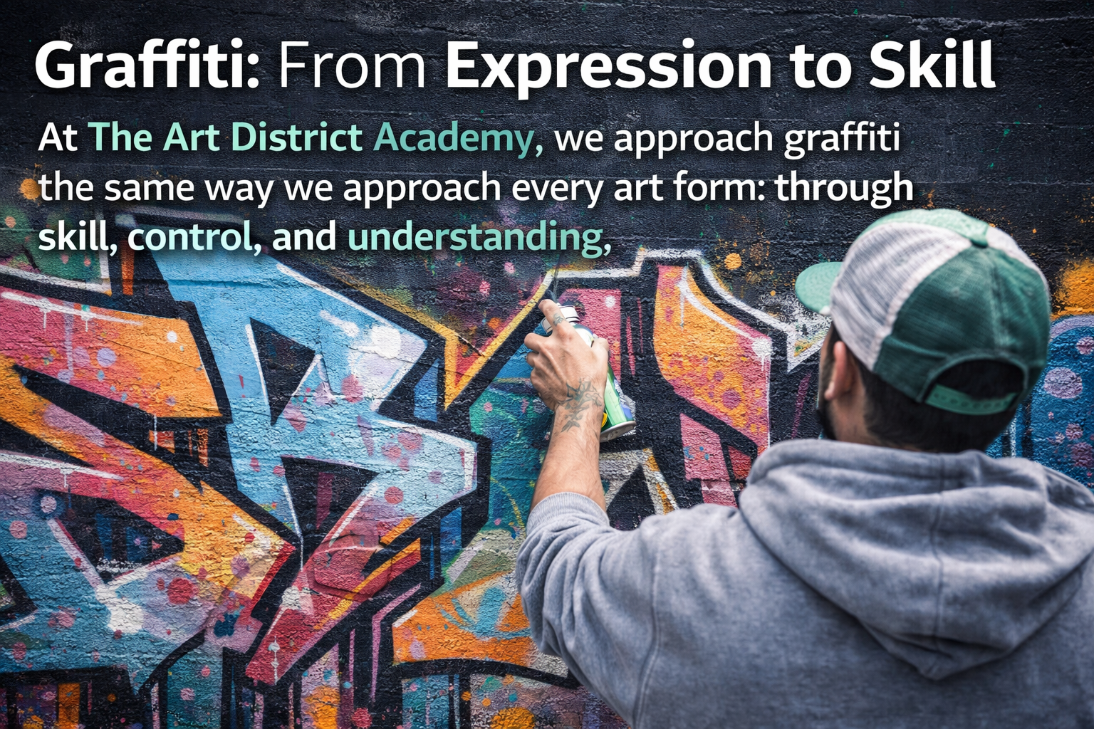 People see bold colors, fast lines, and raw energy—but what they don’t always see is the structure behind it. At The Art District Academy, we approach graffiti the same way we approach every art form: through skill, control, and understanding.